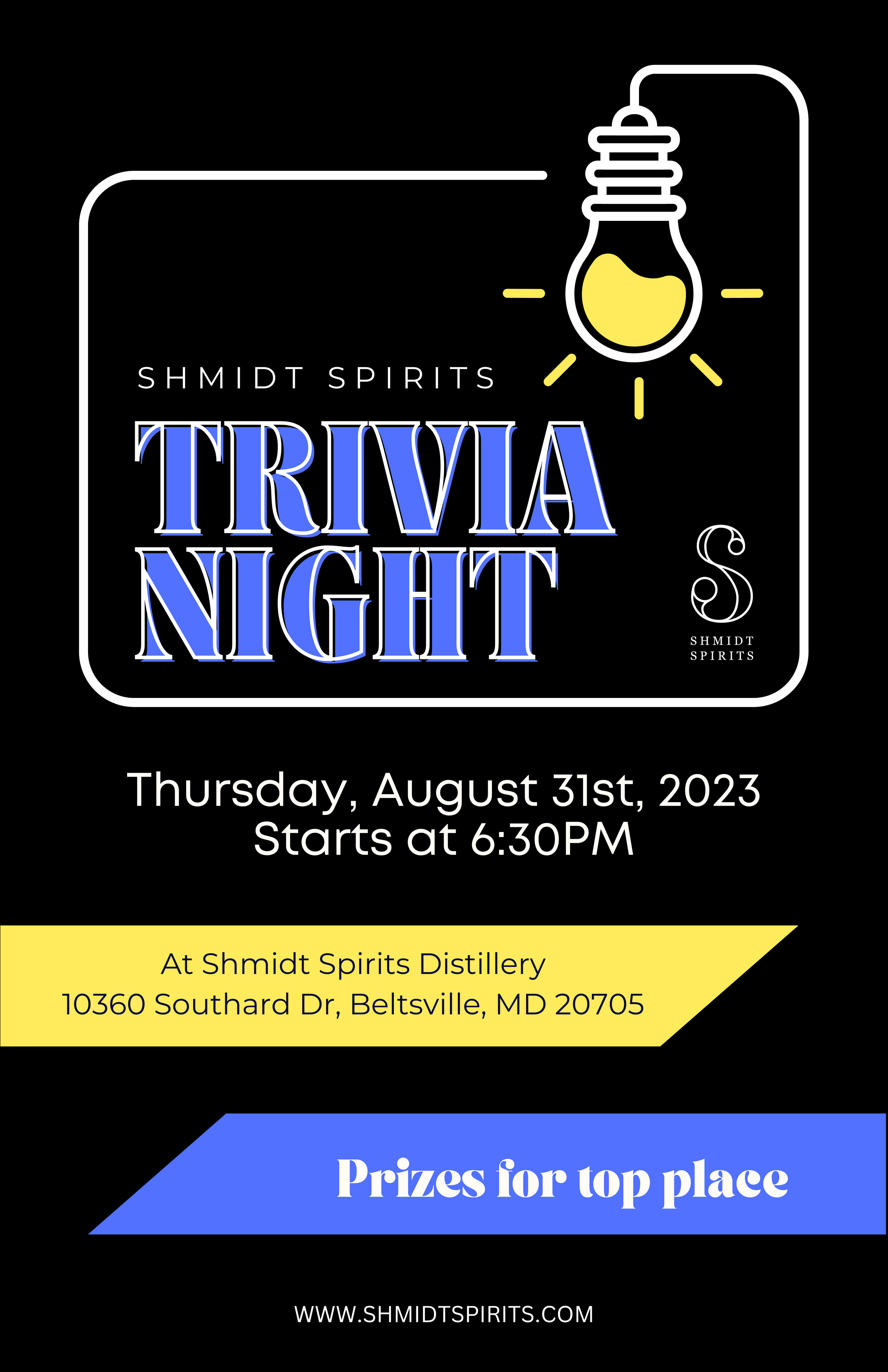 Trivia Night! Thursday, August 31, 2023 5:00 PM 6:00 PM 17:00 18:00 Shmidt Spirits 10360 Southard Drive Beltsville, MD, 20705 United States (map) Google Calendar ICS An evening of mindbending questions and wonderful cocktails. Come with some friends and win fabulous prizes.